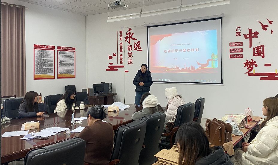本网讯(外国语学院 黄超禹)为帮助外国语学院2023级学生明确考研目标、激发备考热情,2025年12月25日,学院2023级班主任赵康琴、聂祥乙分别组织英语231班、英语232班开展考研动员会,2023级全体学生参加。