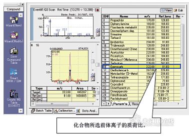 得到最优离子通道和碰撞能(CEs)后,点击“Register with Smart DB”按钮,将其登记到Smart 数据库中,然后通过Smart MRM 功能,自动创建目标化合物的MRM 分析方法。图8 中通过SmartMRM 功能,快速创建420 种农药残留同时分析的MRM 方法,获得高灵敏度和高精度的实验结果。