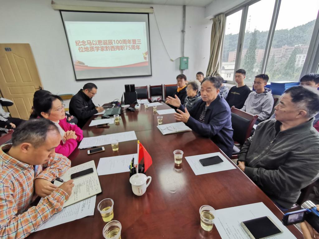 贵阳的十月,持续阴雨连绵,似乎在述说75年前,许德佑、陈康、马以思三位地质英烈在贵州普安、晴隆发生的悲壮故事。10月25日,由贵州省地质学会主办,贵州理工学院协办的《纪念马以思诞辰100周年暨三位地质学家黔西殉职75周年》座谈会在贵州理工学院举行,中心杨涛副主任参加了纪念活动。围绕“缅怀地质先烈,传承科学精神”主题,师生们与马以思亲属进行了座谈交流。交流会后,与会代表前往贵阳蔡家关地质陵园、三位地质学家的墓地进行了祭奠。省地质学会秘书长廖莉萍主持纪念活动。