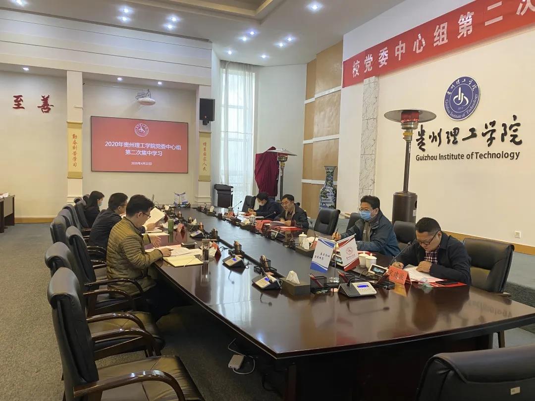 本网讯(党委宣传部/文图)2020年4月22日上午,我校党委中心组在喀斯特报告厅召开2020年第二次集中学习会。会议由党委书记曾羽主持,校领导苏向东、梁杰、宋建波、胡兴灿、贺梦依、高勇出席会议,党群部门及相关行政部门负责人、各基层党总支书记参加会议。