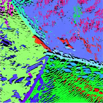 对于结构相同或相近,成分不同的相可以利用EBSD-EDS一体化功能检测,即靠成分差别区分(在牛津仪器中称作 True Phase 功能)。