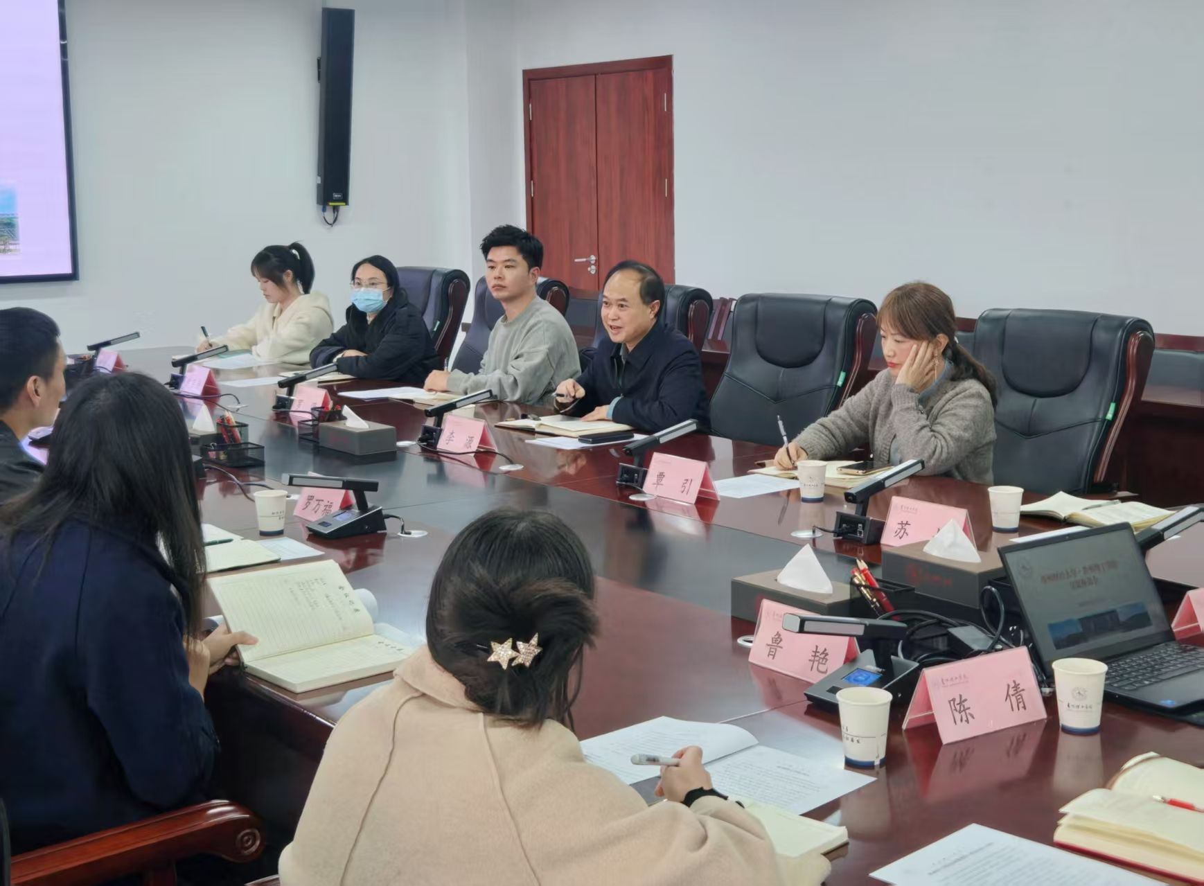 2025年12月3日, 贵州财经大学发展规划处处长杨燚、计划财务处副处长王红令带队一行莅临我校,就项目库管理工作、“十五五”规划实施等工作开展调研交流。座谈会由我校发展规划处(研究生处)处长李源主持,发展规划处(研究生处)及计划财务处相关科室负责同志参加座谈。