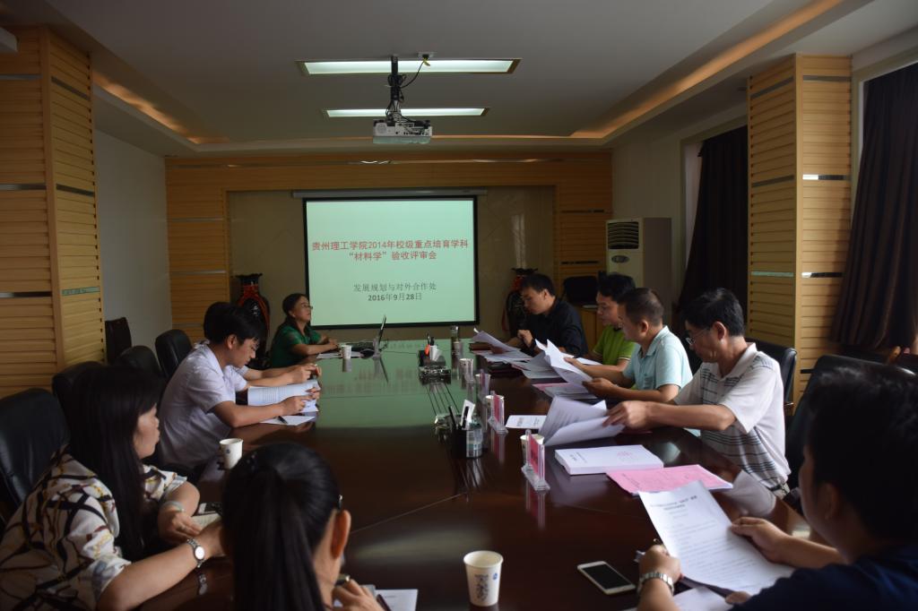 我校2014年立项建设的首批校级重点培育学科之一“材料学”,于2016年4月29日向发展规划与对外合作处申请提前结题验收。经学科建设办审核,同意该学科按照《贵州理工学院重点学科建设与管理办法》(贵理工〔2014〕51号)的规定进行结题验收。发展规划与对外合作处于2016年9月28日,组织校内专家,以现场汇报、专家质询、和撰写专家组验收意见等环节,对“材料学”学科进行终期验收。