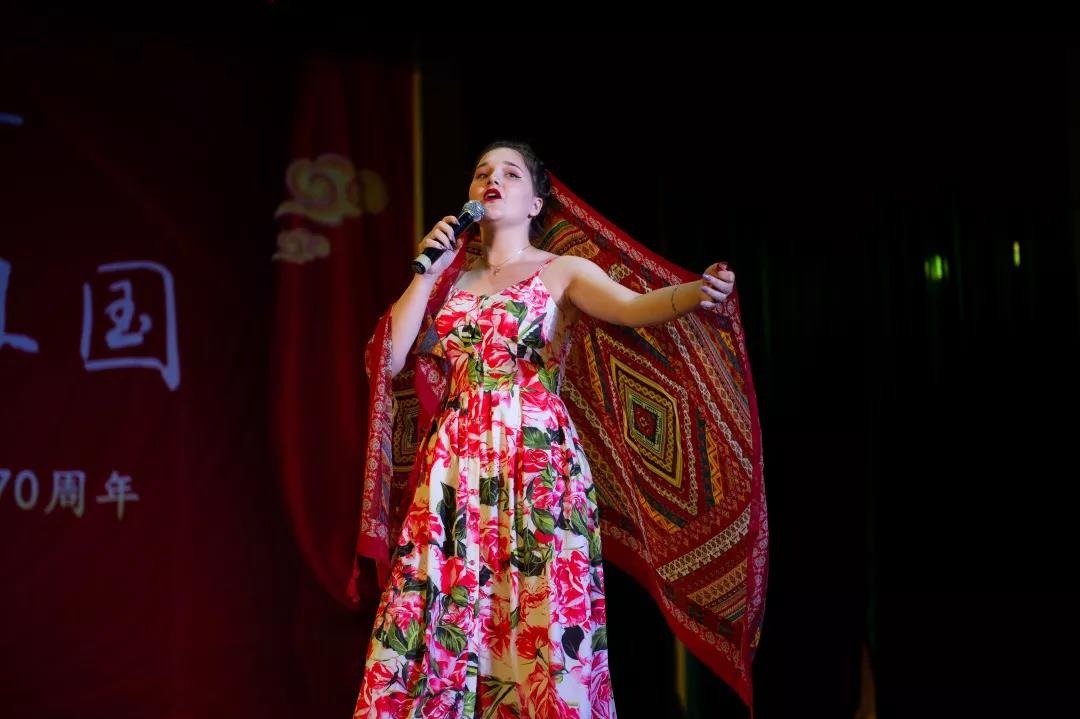 舞蹈《向快乐出发,向祖国致敬》用欢快的舞步传递着心中所想,祖国母亲祝您生日快乐!一曲古风古韵的《青花瓷》古筝声声清脆,舞蹈优美动人。具有少数民族特色的《苗族水鼓舞》节奏欢快明亮,台下观众随乐而动。《中国梦,世界情》的歌舞串烧燃爆全场,青春之梦不分国界,不分民族,融合在欢乐的节拍中向新中国致敬。