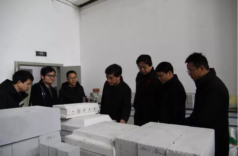 苏向东一行实地调研了混凝土性能检测室、化学建材综合检测室、大型构件检测室、水泥检测室、防水材料检测室、放射性检测室等专业实验室,在调研过程中针对磷石膏建材、新型水泥、特种玻璃、装配式建筑等技术问题与现场工作人员作了详细交流。