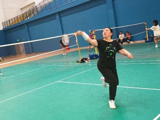 下午在羽毛球馆内,选手们时而起身跳跃、时而大力挥拍,羽毛球在空中快速穿梭,让人眼花缭乱。观众们或站或坐,目不转睛地注视着赛场,每当一方得分,馆内便响起一片喝彩声。经过激烈争夺,人工智能工程学院罗文和资环学院黎春玲分获男女单打第一名,校领导胡兴灿和土木工程学院张挣鑫获男子双打第一名、图书馆沈庭燕、邓国琴获女子双打第一名,化工学院蔡诚、陈娟获混合双打第一名。