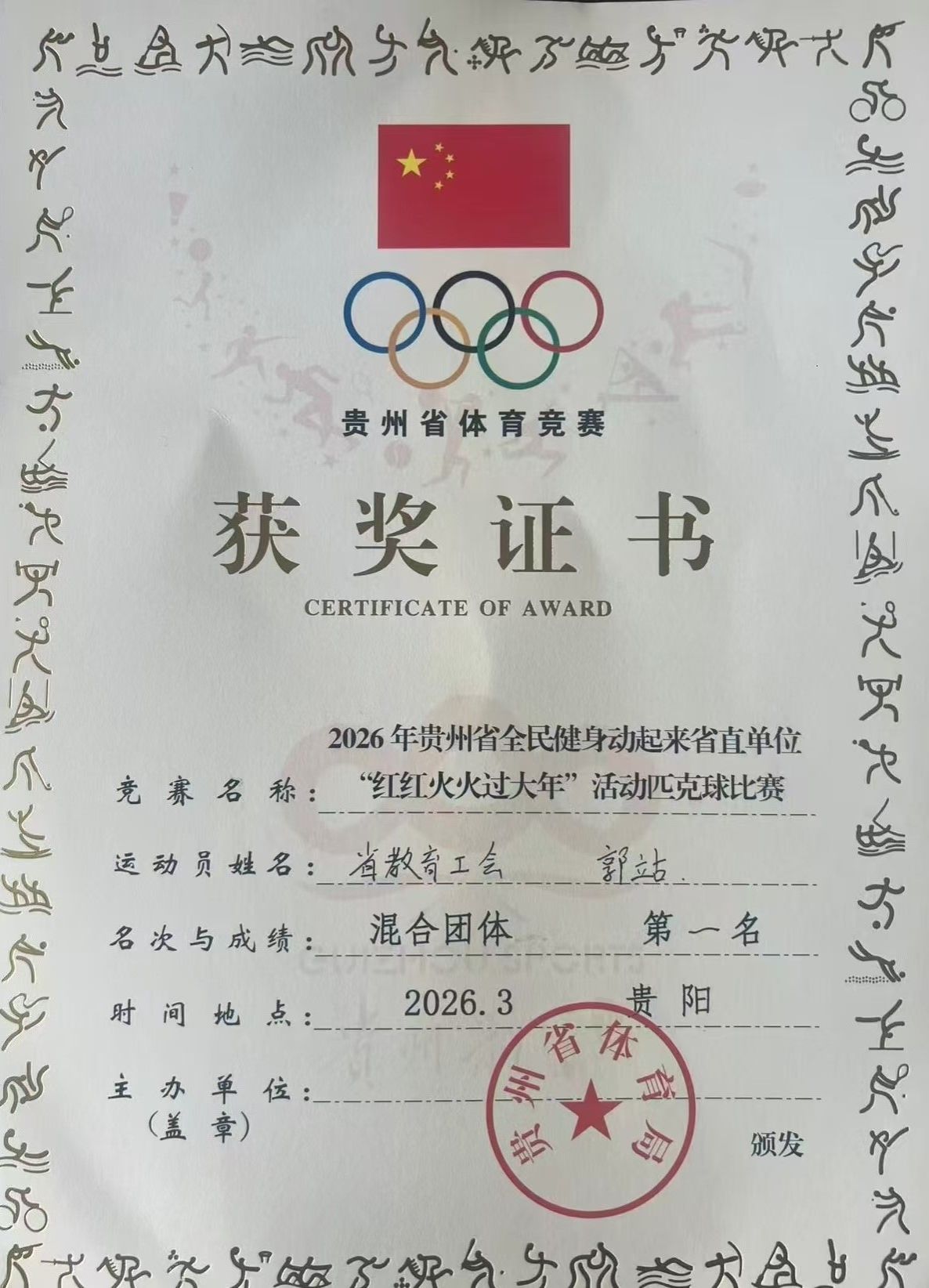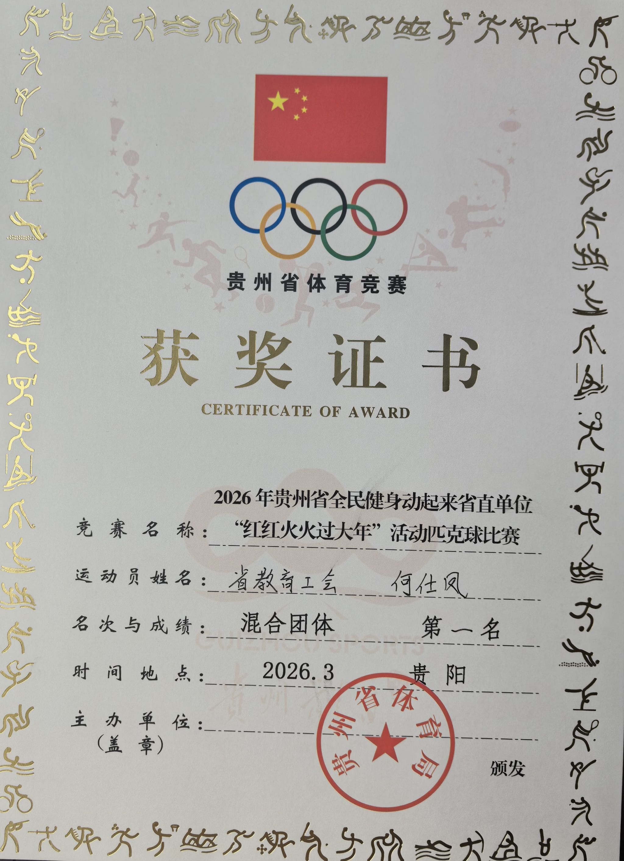 此次获奖是我校教职工在外赛场上的又一次亮眼表现,充分展现了我校教职工的综合素质与精神风貌。后续校工会将持续搭建教职工文体活动平台,鼓励广大教职工积极参与全民健身运动,在运动中强健体魄、舒缓压力、凝聚合力,把赛场上的拼搏精神转化为干事创业的动力,更好地投入到教学、科研与管理服务工作中,助力学校高质量发展,同时也为贵州省全民健身事业发展贡献校园力量。
