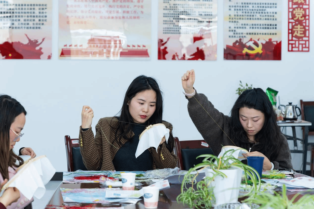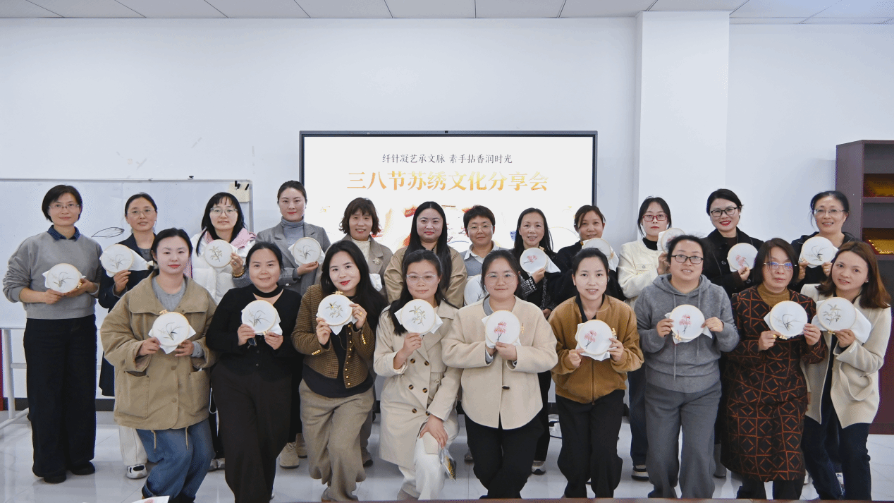 随后,3月13日下午,苏绣文化分享活动在蕴华楼工会会议室温情举办,30余名女教职工相约感受非遗魅力。校工会特邀苏绣传承人现场授课,细致讲解苏绣历史底蕴与基础针法,通过实物展示、手把手教学,带领大家领略非遗手工艺的精致雅韵。大家轻捻针线、静心刺绣,一针一线间沉淀心绪,在传统技艺的熏陶中感受文化之美,既传承了中华优秀传统文化,也度过了一段静谧温馨的午后时光。