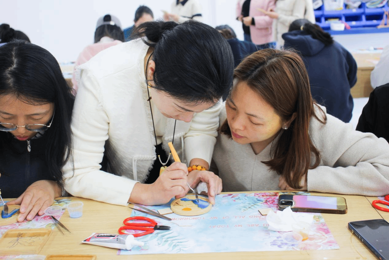 3月12日中午,手工创作活动在重行楼温情开展,60余名女教职工齐聚一堂,沉浸式体验掐丝手工的独特魅力。活动现场材料齐全,大家凝神专注、巧手创作,从勾勒轮廓到精细塑形,从色彩搭配到成品打磨,每一步都细致用心。闲暇间相互切磋技巧、分享心得,在慢节奏的手工创作中陶冶情操、治愈身心,亲手打造的专属作品,更是成为节日里独有的美好纪念,也让大家收获了满满的幸福感与归属感。