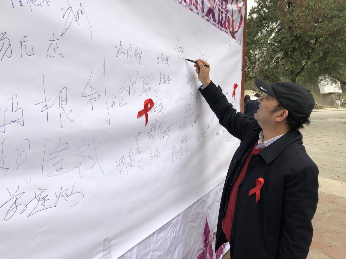 为了让我校师生更进一步了解艾滋病防治相关的知识,11月30日,校工会与校团委、后勤处、校防艾协会的师生们一起,在校园天池旁开展了艾滋病防控科普宣传活动。校党委书记曾羽,副院长胡兴灿来到现场指导工作,并亲自填写调查问卷及签名。活动现场,向往来的师生讲解防艾相关知识,发放艾滋病知识资料,邀请师生们填写问卷并在签名版上签名。