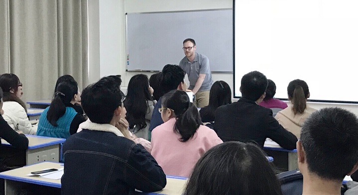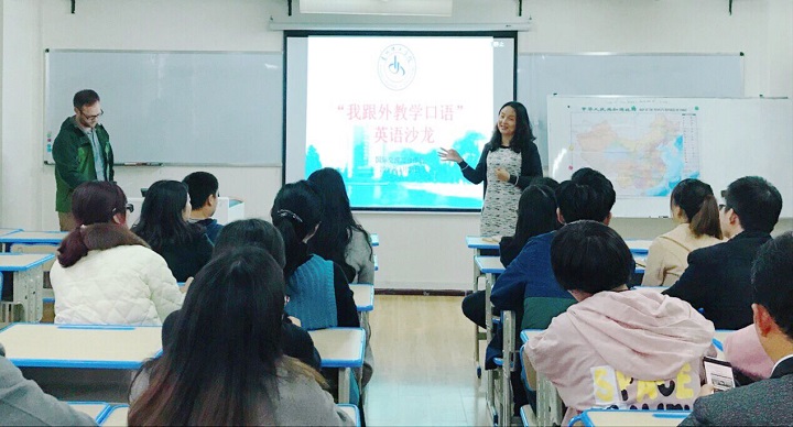 本网讯(国际交流与合作处 孔令昱)2018年3月28日下午,国际交流与合作处在三教606教室举办了首期“我跟外教学口语”教职工英语沙龙活动。国际交流与合作处处长乔靖、美籍外教Daniel Herbert Case及各学院与行政机构的50余名教职工参与了此次活动。