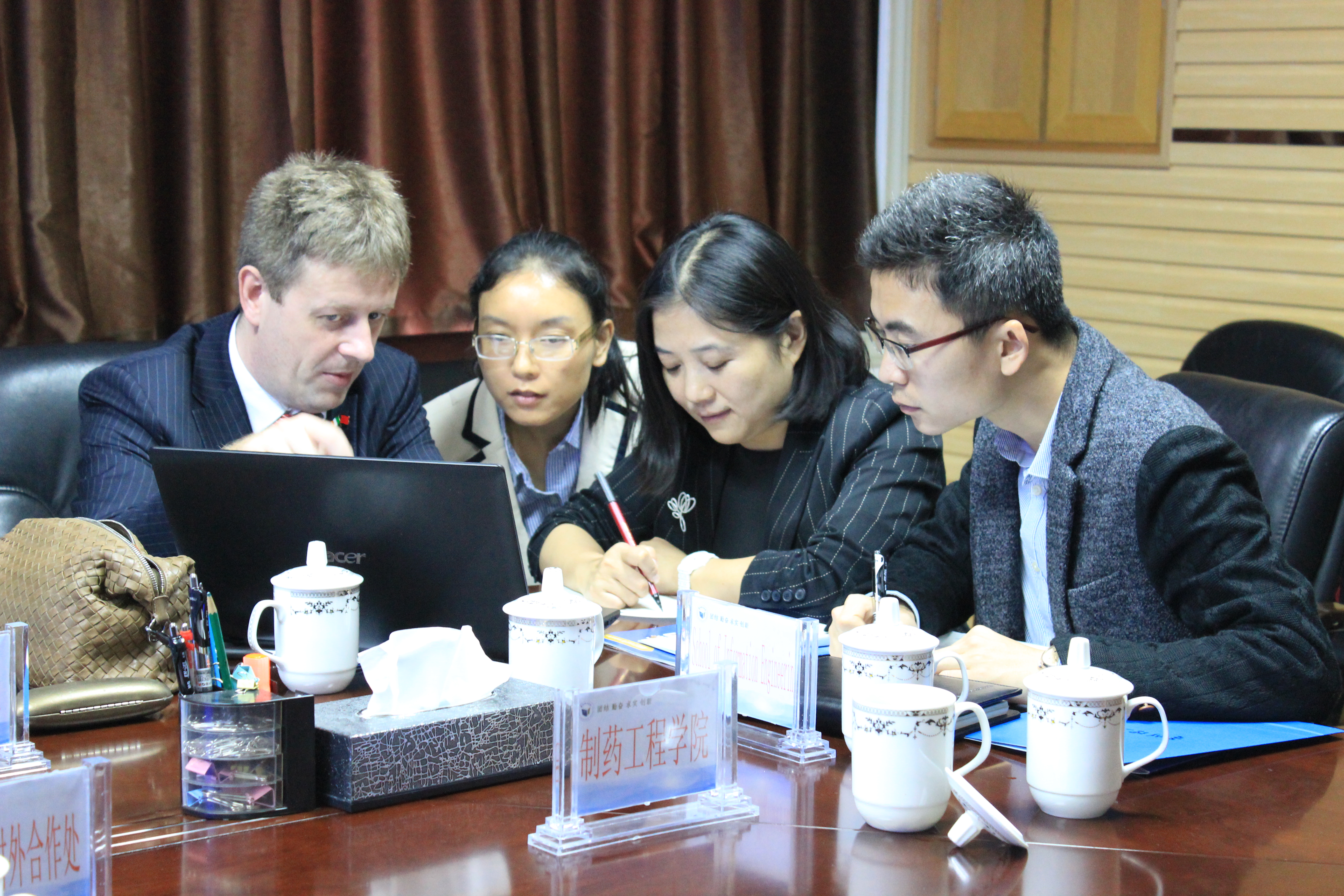 10月30日上午,爱尔兰都柏林理工学院食品科学与环境健康学院院长Dr. James Curtin、计算机学院研究生教育与研究生部主任Dr. Sarah Jane Delany、计算机系主任Dr. Barry Feeny、食品科学与环境健康学院国际项目副主任Dr. Liu Goggin一行四人访问我校。国际交流与合作处、教务处、发展规划与对外合作处、信息工程学院、继续教育学院与客人在行政楼四楼会议室进行交流座谈。