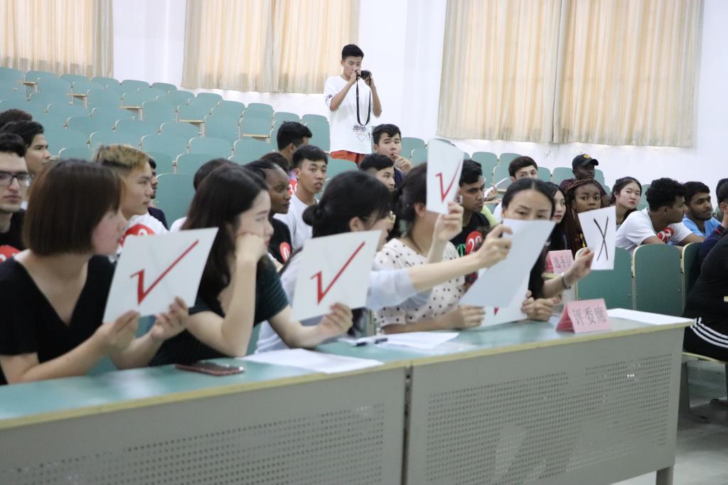 比赛开始前,国际教育学院院长乔靖致开幕词,她鼓励同学们努力学习,以赛促学,希望大家赛出风格、赛出水平。本次大赛分为预赛和决赛,预赛分组进行,赛前由选手抽签决定比赛组别,预赛得分最高的选手进行决赛,决赛采取淘汰赛制。