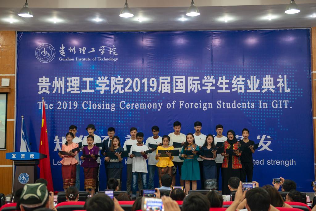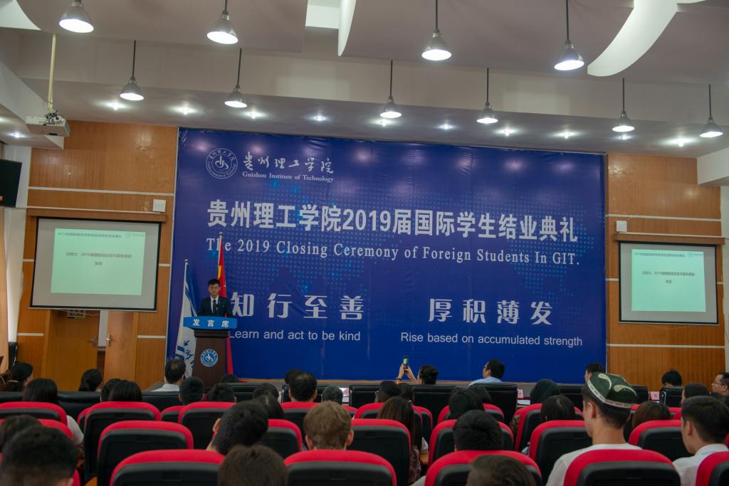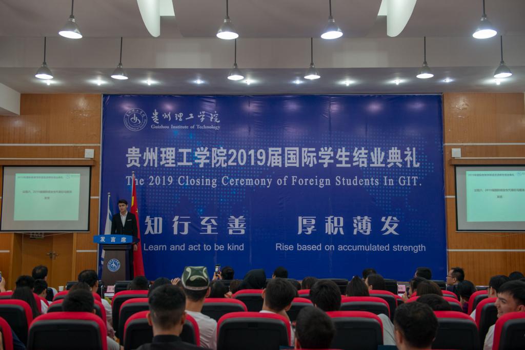 典礼由国际教育学院院长乔靖教授主持,并在国际学生的合唱《莫负好时光》中拉开序幕,贵州理工学院副院长宋建波为大家颁发了结业证书并致贺词,他用“唱一首歌、读一本书、写一篇文章”作为对同学们的寄语,表达了同学们与学校、贵州、中国之间及“一带一路”参与国之间斩不断的情谊。