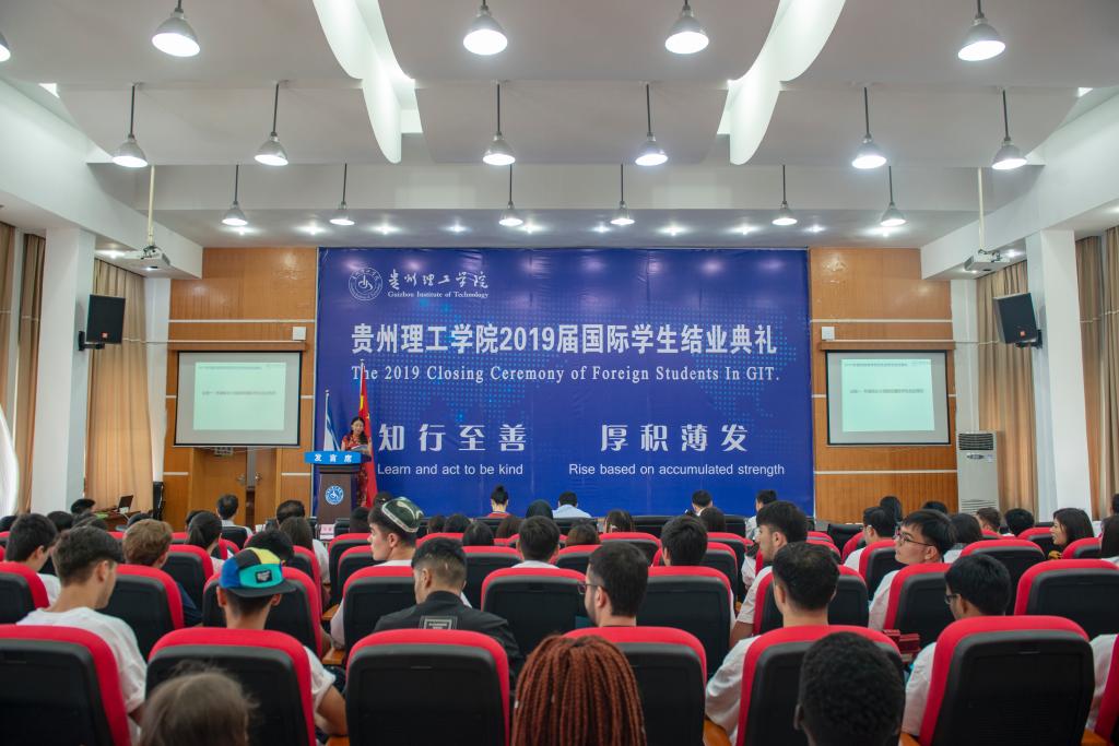 又是一年毕业季,7月16日上午,贵州理工学院国际教育学院隆重举行了2019届国际学生结业典礼。贵州理工学院副院长宋建波、党委宣传部、学工部、教务处、后勤处、团委、保卫处,土木工程学院、大数据学院、经济与管理学院、食品药品制作工程学院、电气与信息工程学院、城市与建筑规划学院、资源与环境工程学院、化学工程学院负责人及国际教育学院全体师生共同见证142名国际学生的结业仪式。