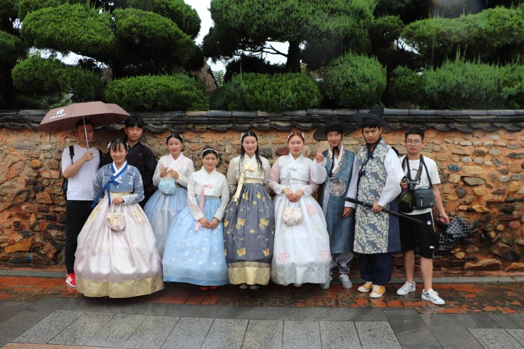 为了融入当地学习与生活环境,我校学生积极学习韩语,短短20天,同学们已经掌握基本用语。韩国交流学习期间,同学们在韩国全州大学韩老师的带领下,参观了全北韩屋村、景福宫,拜访长寿研究所,了解了韩国文化进程;同时,同学们还学习制作韩国披萨辣酱,体会乐韩国本土的饮食文化。