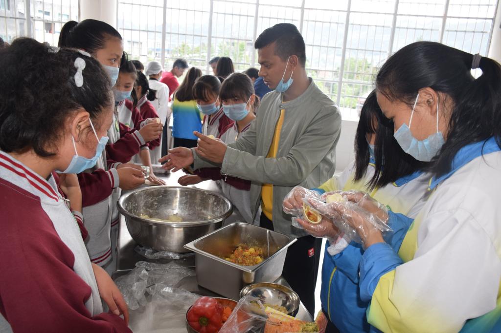 我校国际学生还在城关初级中学同学们的帮助下,精心烹制了异域美食,引得城关初级中学的同学们竞相品尝。