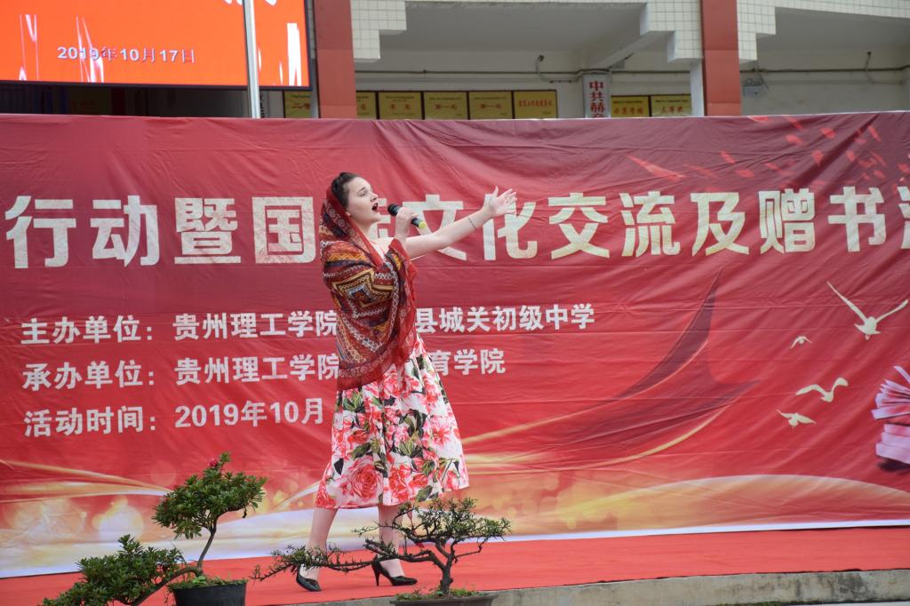 在国际文化交流环节,国际学生们表演了独具民族文化特色的歌舞,赢得城关初级中学师生们的阵阵喝彩。