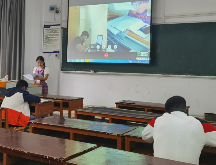 据此,我院组织了此次校内测试,测试场次包括汉语、数学和物理考试,考试形式为线上测试和线下测试同时进行。线下考试国际学生参加纸笔考试,在规定教室内由监考教师监督;线上考试国际学生参加网络考试,监考教师将电子设备在线摄影影像投放至现场大屏幕上,由监考老师和线下考试学生共同监督,保证考试的公平、公正。