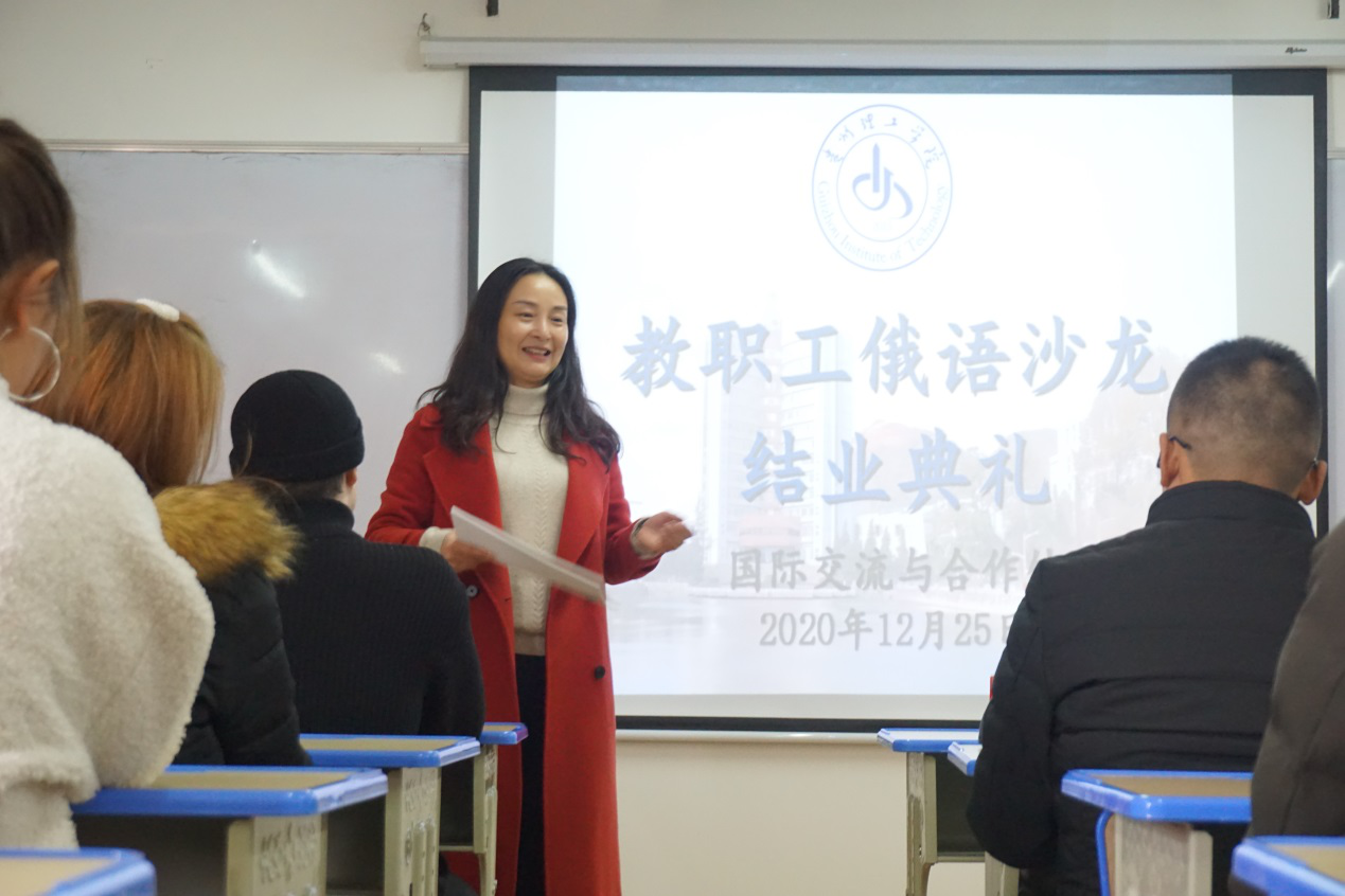 (国际交流与合作处 孔令昱)2020年12月25日中午,国际交流与合作处在三教606教室举行了本学期教职工俄语沙龙结业典礼。国际交流与合作处处长乔靖、教职工学员、俄语区籍留学生,以及国际交流与合作处工作人员参加了此次结业典礼。典礼由乔靖主持。
