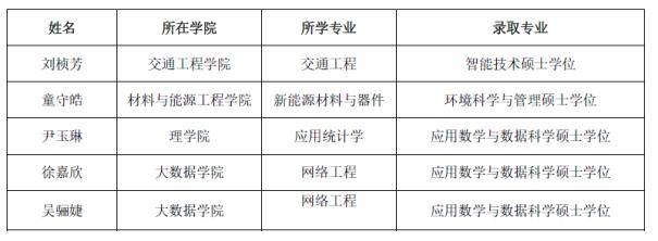 截止到2021年5月14日,我校4个专业学院的5名同学通过我校保送推荐被澳门科技大学录取为硕士研究生。名单如下: