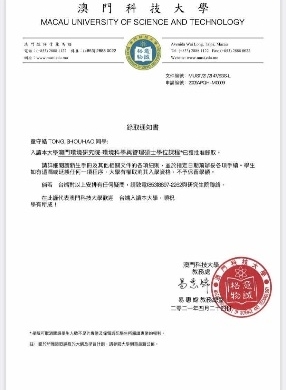 (本网讯 文/卢朦朦 童守皓)2016年至2021年,我校共有14名(2017年2名、2018年2名、2020年5名、2021年目前已录取5名,第二批还在录取中)优秀应届毕业生通过此项目以保荐生身份赴澳门科技大学研究生院深造,为使我校师生全方位了解“贵州理工学院•澳门科技大学保荐项目”,让更多贵理工学子有机会赴澳科大研学,贵理工国际交流与合作处公众号从本月开始,将特别推出贵州理工学院•澳门科技大学保荐项目:2021年录取新生系列报道、历年录取学生读研感悟报道、已毕业学生就业去向报道,以彰学风!