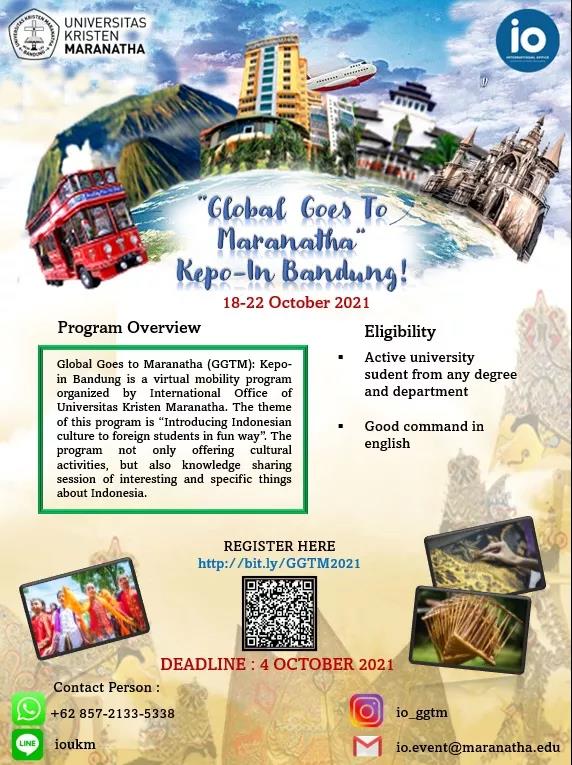 2021年10月18日至22日,印度尼西亚万隆克里斯汀大学举办“趣味介绍印度尼西亚文化”在线主题活动,我校国际交流与合作处、国际教育学院师生应邀参加了此次活动,活动通过ZOOM平台以线上直播的方式进行。