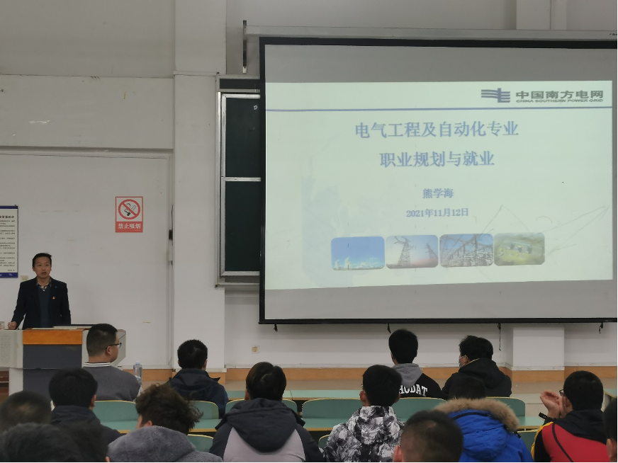 为推进学院就业指导培训工作,提升学生求职就业能力、促进学院及学生个人的良性发展,国际教育学院特邀贵州电网有限责任公司熊学海高级工程师于2021年11月12日在3教416教室为学院电自合专业各级学生做就业指导讲座。