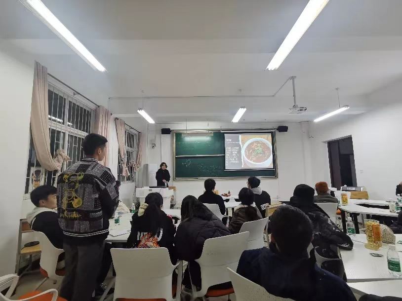 本学期第一次英语角由电自合203张赆瀚同学主持,活动主题为家乡美食专题,在活动中,国际学生对自己国家食物进行介绍,主持人讲解各地美食,以及进行看图猜美食等互动,主持人为大家献唱了英文歌,活动最后学院徐丽丹副院长做了简短总结。
