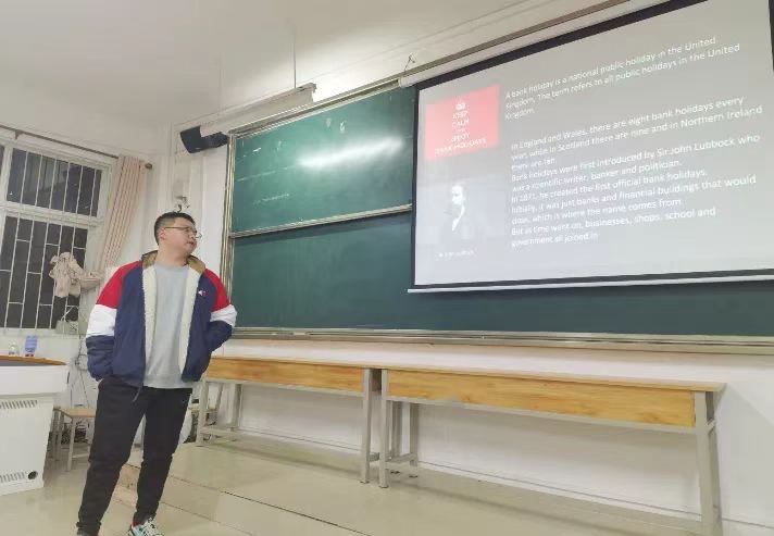 最后一次英语角主题为“英国的节日”,由电自合202班彭辽原主持,对英国的传统节日与活动进行了介绍,随后带领大家围绕活动主题开展了故事接龙、你画我猜等互动电自合201班隗一同学为大家带来一曲经典英文歌曲《Lemon Tree》,本学期英语角活动在大家热烈的掌声中圆满结束。