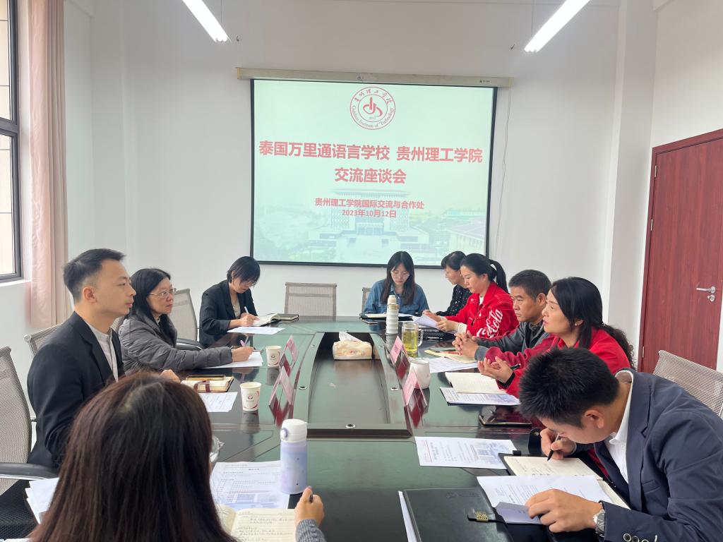 10月12日上午,泰国万里通语言学校泰方校长Ms.Nongnuch Cheewasrirungruang及中方校长Mr.Zhenwen Wu赴我校交流,国际交流与合作处、国际教育学院全体人员参加座谈。会议由国际教育学院党总支书记李学明主持。