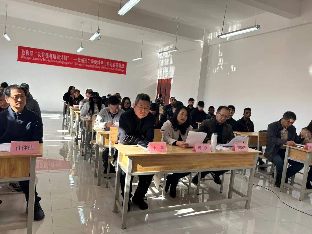 最后,贵州理工学院机械工程学院院长周知进对本次研修班课程安排做了简要介绍:本次“友好使者”研修班培训时间为2023年11月28日至12月11日,主题为贵州特色工科专业研修班,培训学员分别来自泰国北清迈大学、马来西亚彭亨大学、马来西亚敦胡先翁大学,共计23名师生参加。培训课程由我校机械工程学院精心设计,主要内容为工程图像的数字化表达,通过学习让大家了解工程制图的基本规定、投影方法、表达方法、读图与画图方法等。此外,还有贵州省情、文化体验、科技体验类课程,内容丰富,形式多样。通过此次培训能够加深与友好院校的合作,实现共同发展。