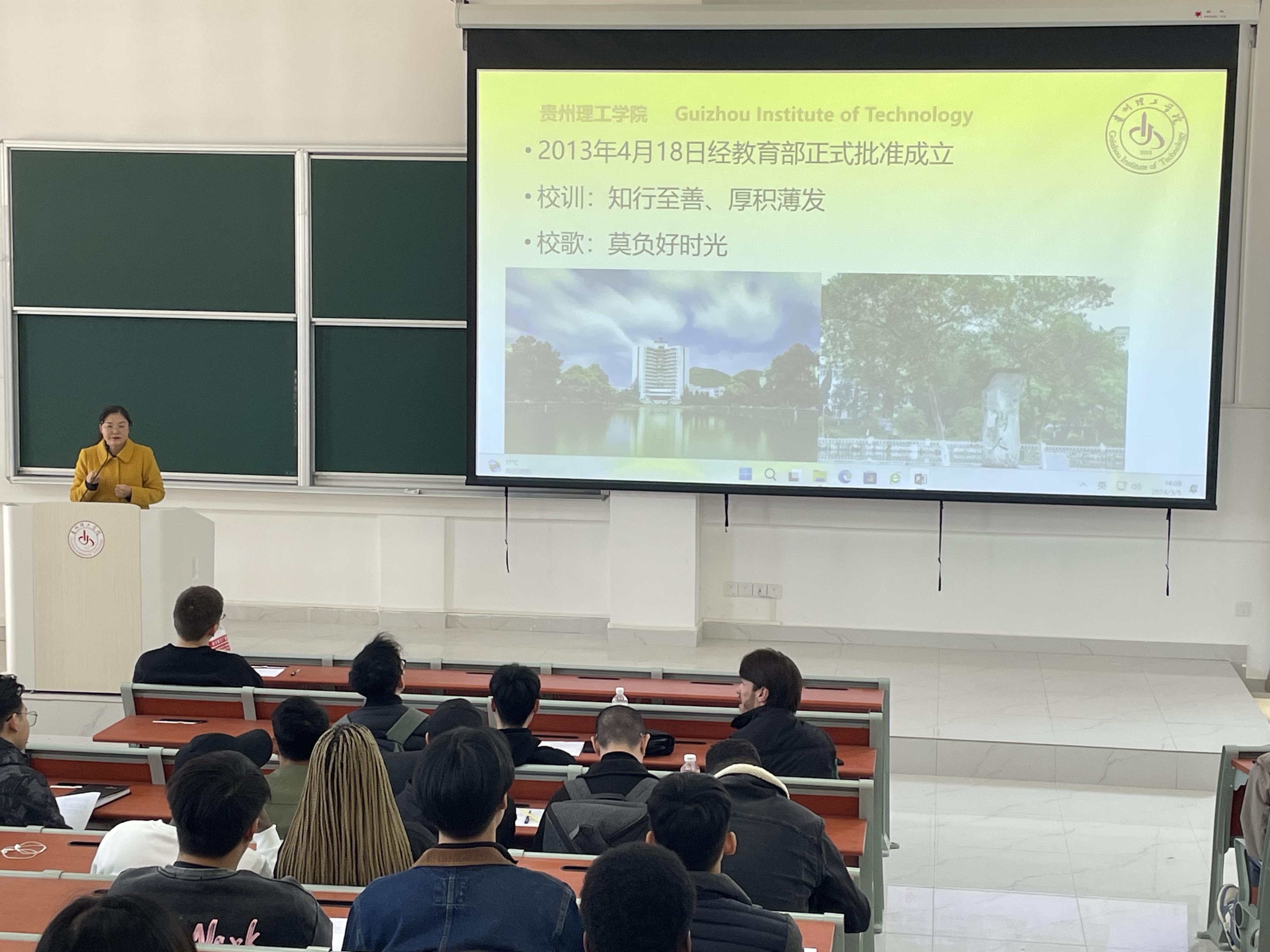国际教育学院副院长徐丽丹作了题为“缘聚理工——跨越文化的相遇与启程”的主旨演讲。演讲从“贵州理工学院的昨天和今天、学在理工、学在国教”三个方面展开,详细阐述了学校的发展历程、学科建设成果以及国际教育学院的优势。她希望国际学生们珍惜在贵州理工学院的学习机会,不断提升自主学习能力,能够学有所成。此外,在学好专业和语言的基础上,多到中国各地走走,深入了解中国,将真实、立体、全面的中国形象传播给更多的国际友人,为讲好中国故事、理工故事做出贡献。