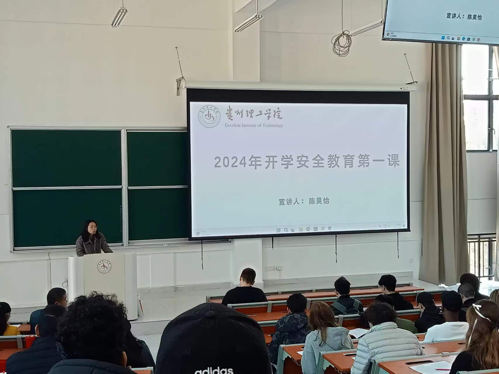 新学期伊始,为帮助同学们以饱满的热情投入到学习生活,增强学生们的安全意识,国际教育学院于2024年3月5日下午在C04-422阶梯教室召开了春季开学第一课。国际教育学院领导、教师以及全体国际学生参加。