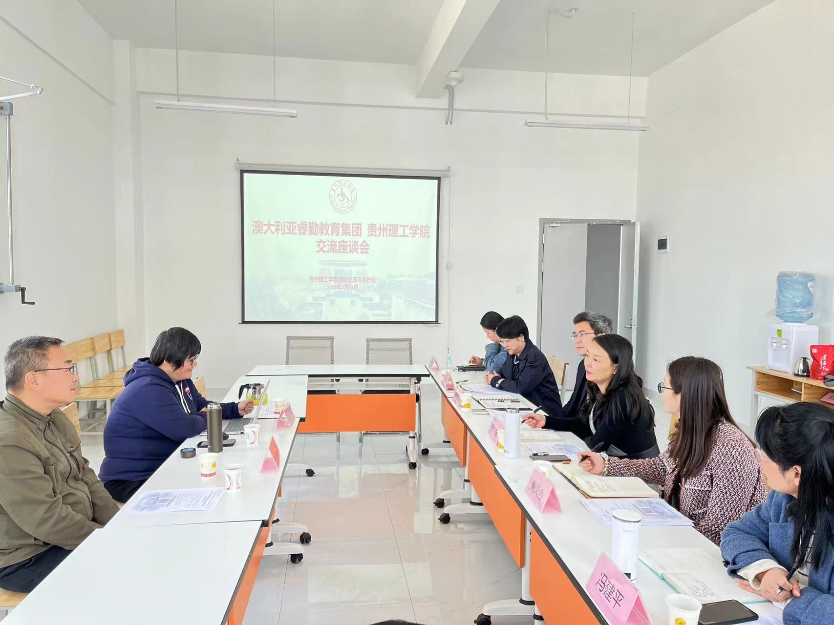 3月21日下午,澳大利亚睿勤教育集团董事Tina Hou、Michael Fu来我校交流座谈,国际交流与合作处、食品药品制造工程学院、矿业工程学院、外国语学院党政有关负责人参加了会议。