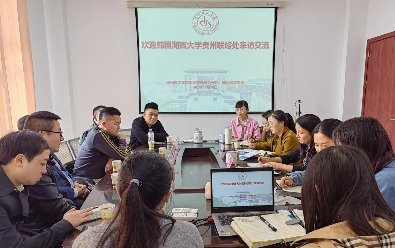 2024年3月28日,我校与韩国湖西大学贵州联络处召开交流座谈会。会议由国际交流与合作处处长、国际教育学院院长乔靖主持。