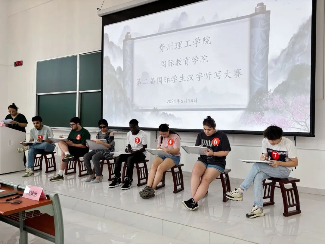 为进一步弘扬汉字文化,提升国际学生汉字书写能力,6月14日下午,国际教育学院成功举办了第二届国际学生汉字听写大赛。本次大赛吸引了来自13个国家的40名国际学生积极参与。国际教育学党总支书记李学明、副院长徐丽丹,教师代清萌、石丽菊、陈昊怡5人担任评委,我院教师黎娟担任大赛主持,我校省级普通话测试员孙雯担任主考官。