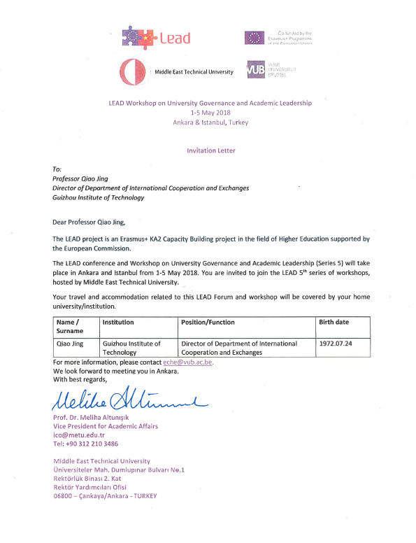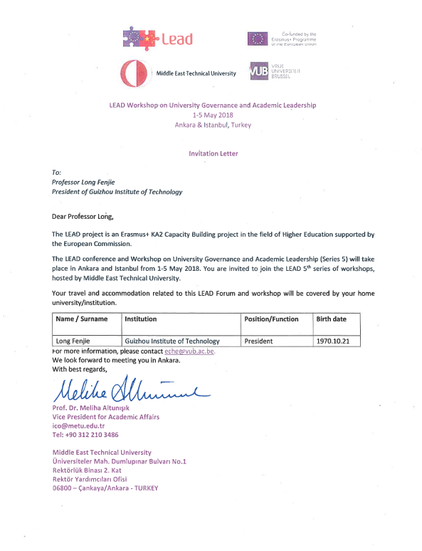 根据中央、国务院出台的因公出国(境)管理工作有关规定,现对贵州理工学院龙奋杰等3人赴土耳其执行参加中欧大学管理及学术领导力提升项目研讨会及中欧大学校长圆桌会议任务公示如下: