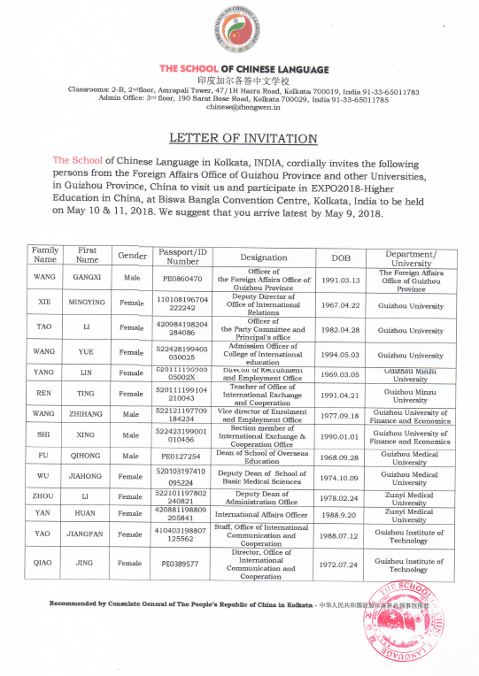 根据中央、国务院出台的因公出国(境)管理工作有关规定,现对贵州理工学院乔靖等2人赴印度执行参加“2018年高等教育成就及招生展览”教育交流任务公示如下: