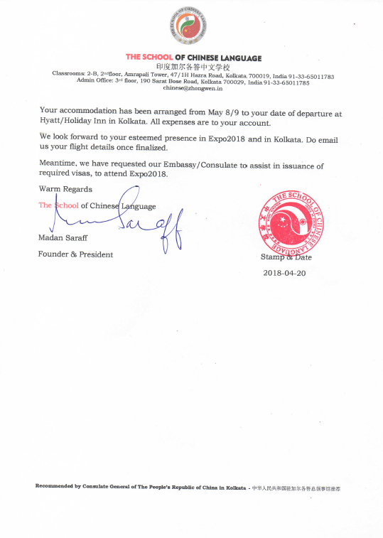 印度加尔各答中文学校由马丹·萨拉夫创办,成立于2008年7月16日,中国驻加尔各答总领事馆总领事主持了建校典礼。2010年通过签署与加尔各答大学及MAKAIS亚洲研究所(印度政府研究机构)的合作项目协议来推广汉语的传播。2011年,为了推广中国高等教育中的英文授课项目,中文学校与中国一流大学达成合作伙伴框架协议,从而使印度学生能够利用高质量且可担负得起的中国高等教育学习英文授课课程。2012年获得北京国家汉办和汉考国际批准,授权成为印度具有国际认可的汉语水平测试中心,该中心可对学生进行培训并举行汉语水平考试。2013年至2014年,为推广中国高等教育,加尔各答大学与云南师范大学、加尔各答印度管理学院与清华大学经济管理学院之间展开了合作,该项目由加尔各答中文学校发起。2018年,加尔各答中文学校与贾达普大学签署汉语教学合作项目协议。2015年至2016年,加尔各答中文学校发起并签署与贾达普大学、云南师范大学、江苏大学之间的推广中国高等教育的合作项目。