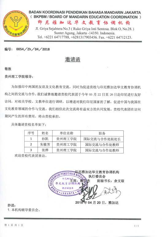 根据中央、国务院出台的因公出国(境)管理工作有关规定,现对贵州理工学院孙凯等2人赴印尼执行交流访问及留学生招生宣传任务公示如下:
