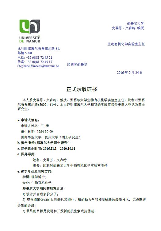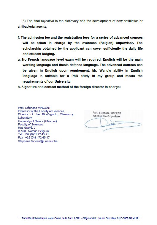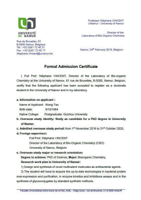 | 以博士研究生身份赴比利时那慕尔大学进行多价分子在生物膜抑制剂与抗菌剂中的应用研究