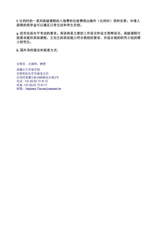此次任务所需费用由2016年国家建设高水平大学公派研究生项目/中比(瓦隆—布鲁塞尔法语区)优秀青年学者奖学金(经费来源)解决,我单位共派出1人,需人民币43元。