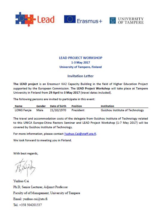 | 参加在坦佩雷大学举办的“中欧大学校长研修班”