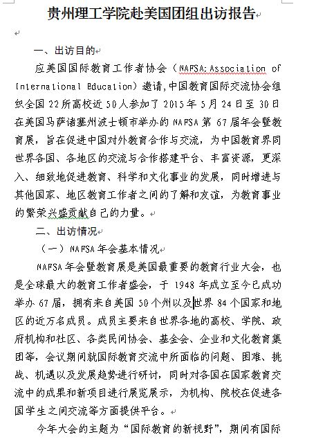 根据中央、国务院出台的因公出国(境)管理工作有关规定,现对贵州理工学院龙奋杰等2人赴美国参加美国国际教育工作者协会第67届年会暨教育展任务完成情况公示如下: