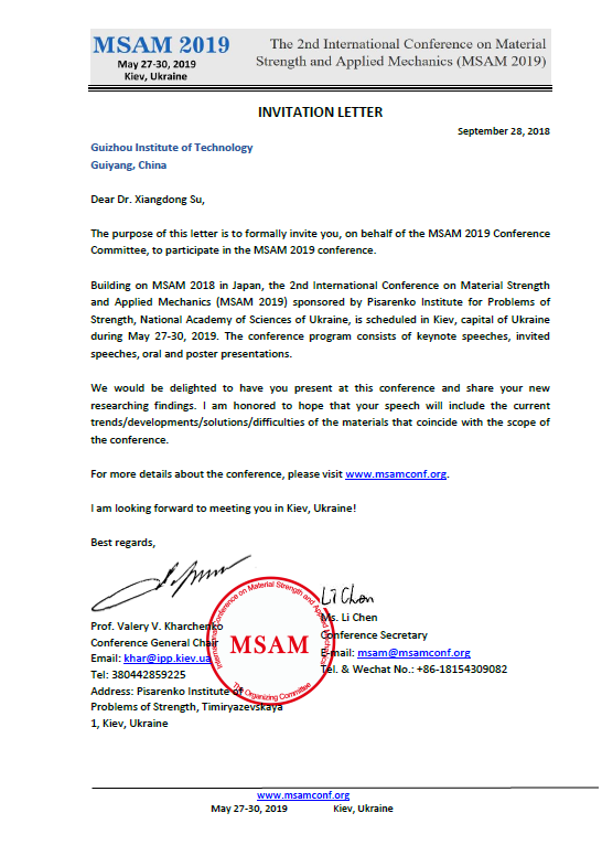 根据中央、国务院出台的因公出国(境)管理工作有关规定,现对贵州理工学院苏向东1人赴乌克兰执行参加2019年第二届材料强度与应用力学国际会议任务公示如下: