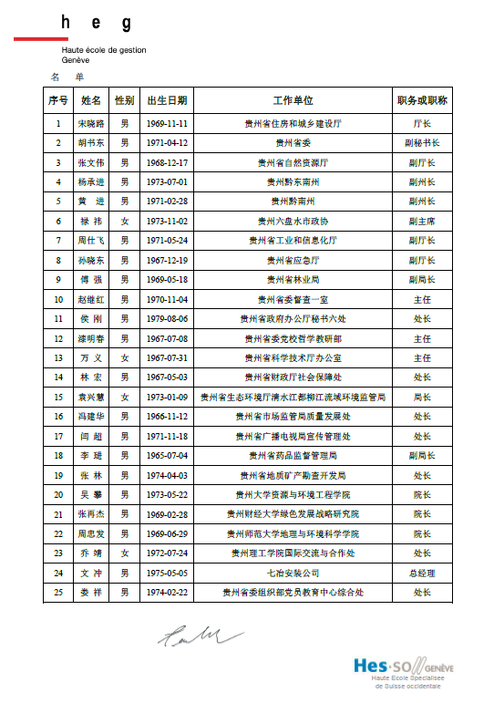 根据中央、国务院出台的因公出国(境)管理工作有关规定,现对贵州理工学院乔靖赴瑞士执行参加低碳经济和循环经济发展培训班任务公示如下: