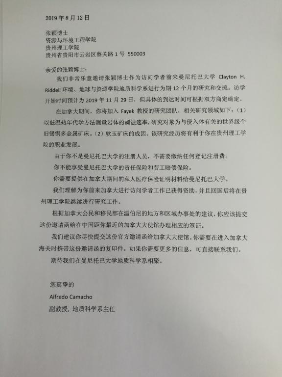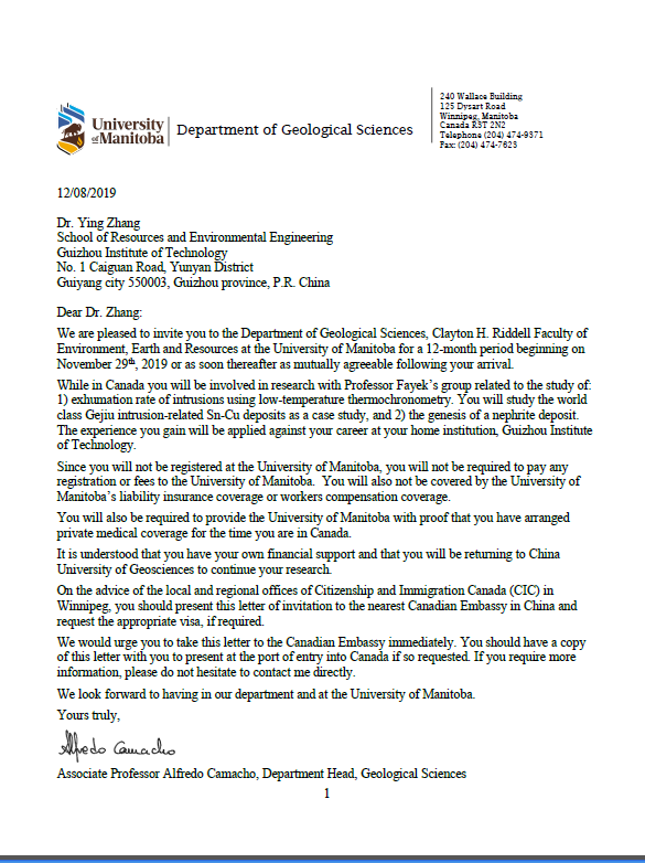 2019年国家公派高级研究学者、访问学者、博士后项目(所在单位或个人合作渠道)出国留学人员,录取文号为留金选〔2019〕53号,学号为201908520020。国家留学基金委资助其赴加拿大曼尼托巴大学进行访学,留学期限12个月。 |