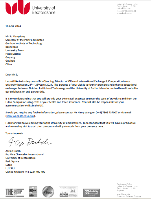 上午:从伦敦乘车抵达卢顿 下午:与贝德福特大学校领导、国际处负责人及创意艺术技术与科学学院院长座谈,交流两校中外合作办学项目、联合培养师资项目等合作事宜 |