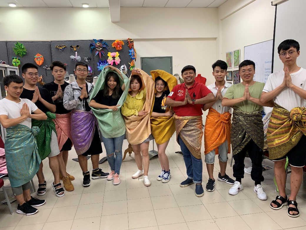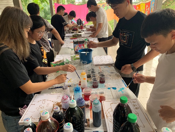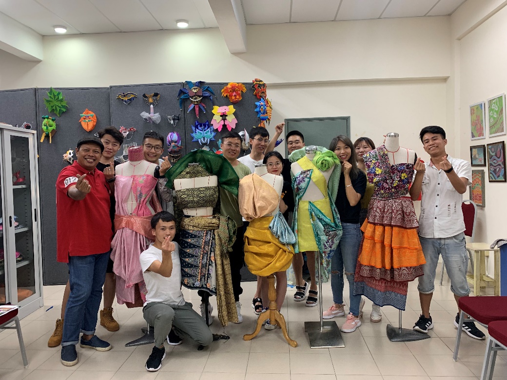 为了丰富同学们的课程以及更好地了解马来西亚的传统文化艺术,拉曼大学学院特意给我校一行人安排了两堂特殊的课,一堂是类似于中国蜡染的马来西亚传统手绘课(Batik),而另一堂则是下午的创意布料垂褶课。